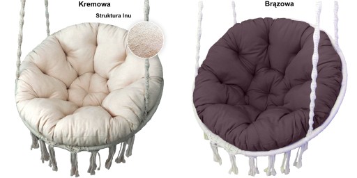 Poduszka pasuje zarówno do huśtawek wiszących typu bocianie gniazdo / kokon jak i do foteli stojących, okrągłych typu Papasan / Jordrup.