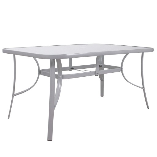 W środkowej części widoczne jest charakterystyczne wycięcie służące jako miejsce na parasol. Ponadto stolik ogrodowy dzięki szklanemu blatowi ułatwia utrzymanie jego czystości. Wysoka jakość wykonania sprawia, że jest odporny na działanie różnych niekorzystnych czynników atmosferycznych.