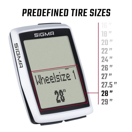 Wystarczy kilka kliknięć i już możesz ruszać w drogę. Dzięki fabrycznie zaprogramowanym rozmiarom opon ustawianie licznika BC 12.0 WR nie sprawia żadnych trudności: od małego roweru dziecięcego aż po rower z kołami 29″. Istnieje również możliwość wprowadzenia obwodu opony z milimetrową dokładnością.