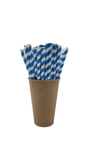 Трубочки бумажные синие в полоску 8х210мм 250 шт.