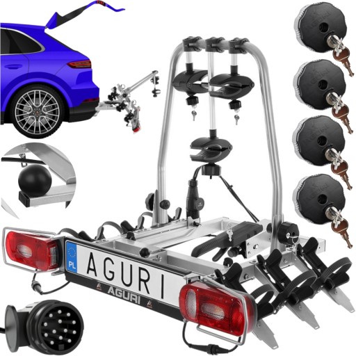 - Bagażnik na hak na 3 rowery Aguri Cruiser 3 Silver.