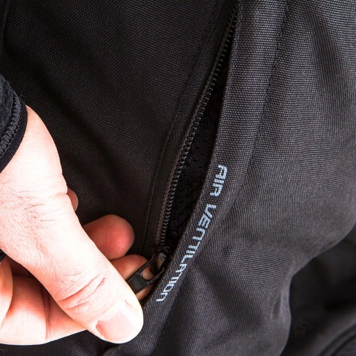 Bezpieczeństwo motocyklisty poprawiają certyfikowane protektory kolan i ochraniacze bioder, które można bez problemu wyciągnąć ze specjalnie uformowanych, zapobiegających ich wypadaniu, kieszeni. Nie zapomnieliśmy też o jeździe po zmroku, umieszczając u dołu nogawek elementy odblaskowe z materiału doskonale odbijającego światło.