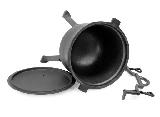 Oryginalny kociołek Meyerhoff wykonany z najwyższej jakości stopu żeliwa odpornego na najwyższe temperatury. Firma ta jako pierwsza zastosowała specjalny odpowietrznik w pokrywie, który reguluje ciśnienie wewnątrz kociołka, przez co jest on w 100% bezpieczny. Kociołek może stać bezpośrednio w ognisku, a dzięki poręcznemu uchwytowi może być zawieszony również nad ogniskiem. Produkt posiada również odkręcane nóżki, przez co kociołek można umieścić w kominku lub bezpośrednio w palenisku. Dzięki wytłoczeniu na pokrywie masz pewność, że kupujesz oryginalny i bezpieczny produkt.