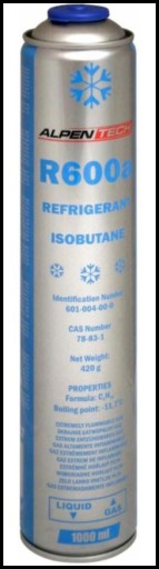 - Butla R600a posiada zawór wewnętrzny, nie ma potrzeby jej przebijania, działa na zasadzie otwórz/zamknij, dzięki temu możemy przechowywać niewykorzystany w pełni czynnik.