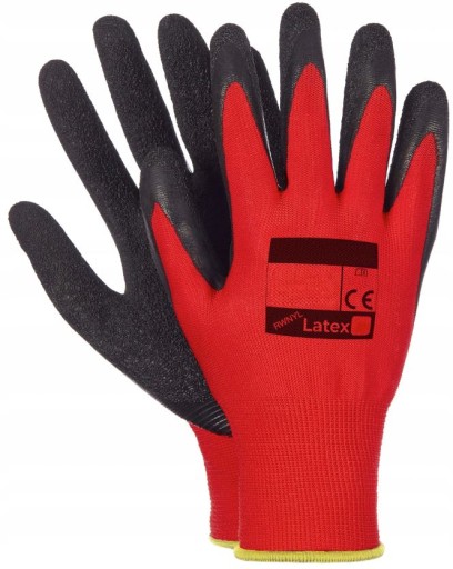 - Rękawice ochronne wykonane z poliestru, powlekane lateksem