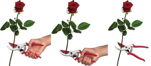- Unikalny system płaskich szczęk przymocowanych do ostrza i przeciwostrza przytrzymuje pęd, umożliwiając zbieranie róż i innych kwiatów bez uszkadzania ich