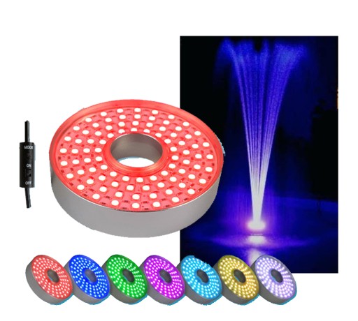 Oświetlenie typu led posiada wiele zalet. Zalicza się do nich niskie zużycie energii, wysoka efektywność i bardzo duża trwałość. Jest dość lekkie, łatwe w montażu a przede wszystkim odporne na działanie wody. Pasuje, jako część zamienna, do fontann pływających PJ 48 oraz PJ 96.