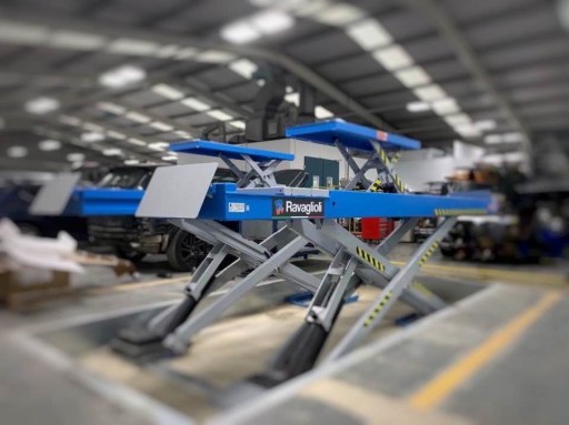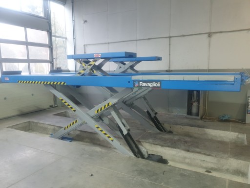 Wloski podnosnik nozycowy RAVAGLIOLI diagnostyczny dlugi do busow az 5500 wraz z drugim podnośnikiem nozycpwym o udzwigu az 4 tony