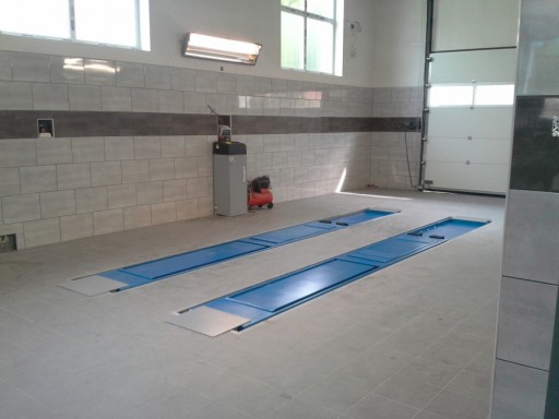 Podnośnik wyposażony w płaskie najazdy z przystosowaniem do pomiaru geometrii