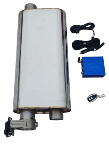 Zestaw zawiera wszystko to co na zdjęciu czyli tłumik, przepustnicę, dwa piloty oraz centralkę sterującą wraz z okablowaniem.