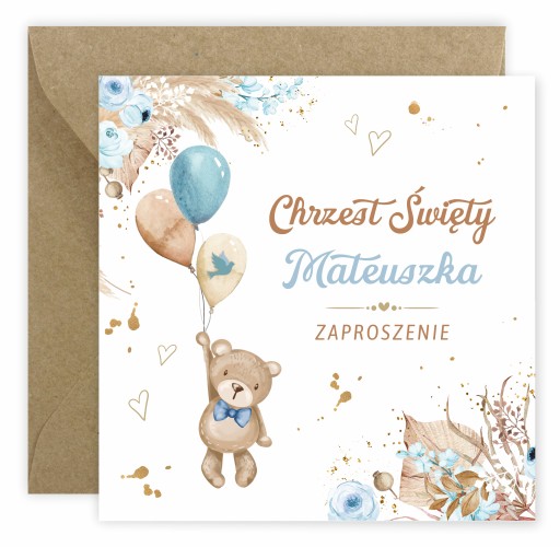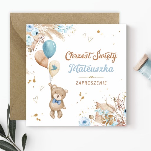 ПРИГЛАШЕНИЯ НА КРЕЩЕНИЕ БОХО МЕДВЕДЬ + КОНВЕРТ + ИМЯ