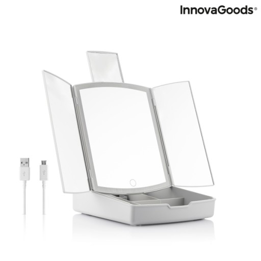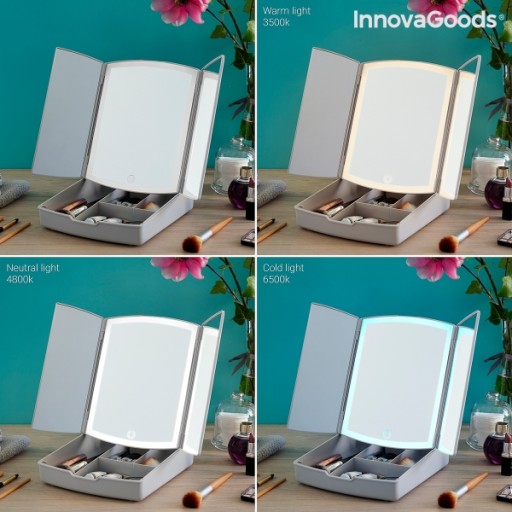 Składane Lusterko do Makijażu z Podświetleniem LED i Organizerem 3 w 1 Panomir InnovaGoods