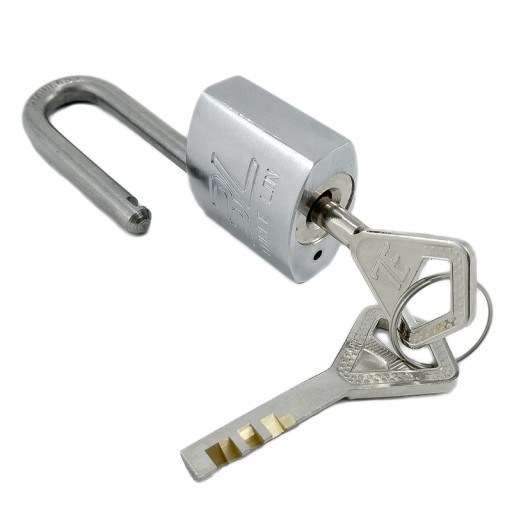 - chromowana kłódka mosiężna z pałąkiem ze stali nierdzewnej oraz 2 klucze