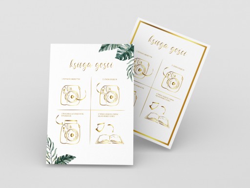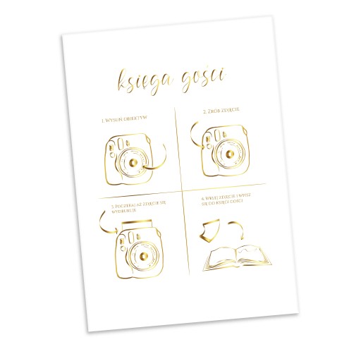 Instrukcja obsługi aparatu INSTAX, pomocna przy wykonywaniu zdjęcia oraz wklejenia ich do Księgi Gości.