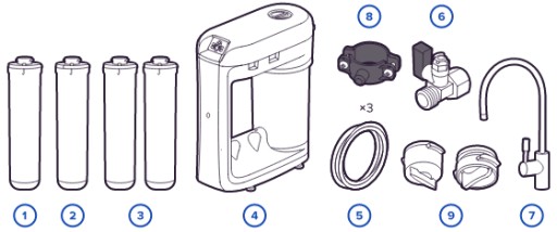 System odwróconej osmozy AQUAPHOR RO-206s do wody pitnej, skutecznie usuwa z wody wszelkie zanieczyszczenia takie jak: bakterie, pasożyty, wirusy, azotany, chlor, ołów, arsen i inne niebezpieczne dla zdrowia toksyny. Całkowicie i trwale usuwa kamień. Łatwa kontrola poziomu zużycia każdego wkładu oraz możliwość podłączenia systemu do ekspresu do kawy. Bardzo kompaktowy i ekonomiczny system w porównaniu do klasycznych systemów odwróconej osmozy, dostępnych na rynku. Do podłączenia systemu wymagane jest gniazdko.