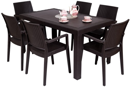 Komplet mebli bez przeszkód można użytkować na zewnątrz, bez potrzeby zadaszenia. Wykonany jest z wytrzymałego tworzywa, które odporne jest na warunki atmosferyczne i promieniowanie UV.