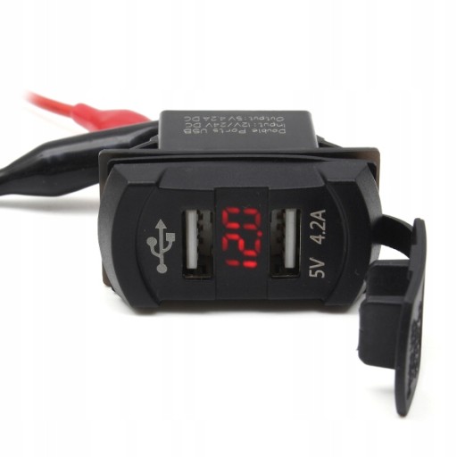 Podwójne gniazdo USB z woltomierzem.