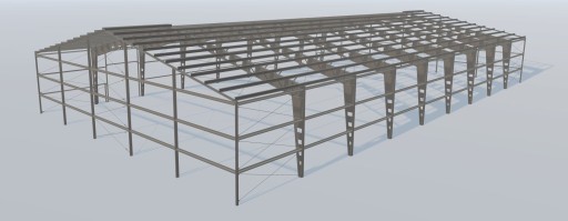 Hala przygotowana do obudowy płytami warstwowymi z rdzeniem poliuretanowym o różnych grubościach. CENA NIE ZAWIERA MONTAŻU i DOSTAWY