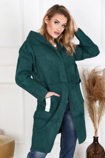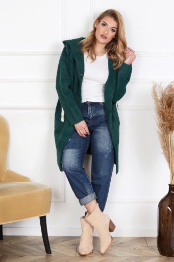 Na tej aukcji oferujemy płaszczyk w kolorze BUTELKOWYM ZIELONYM.