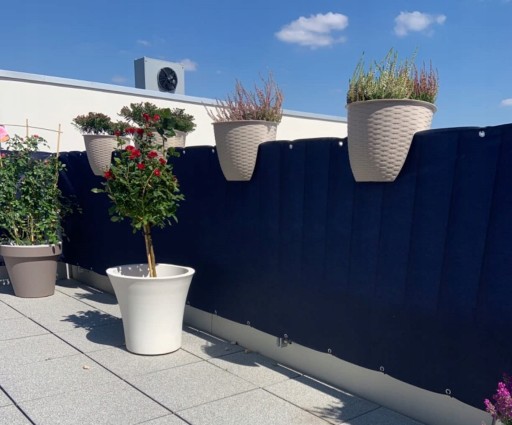 ➡️ Najlepszą metodą montażu osłony balkonowej jest przeplatanie jej między barierkami. Dzięki temu zapobiega się tworzeniu efektu "żagla".