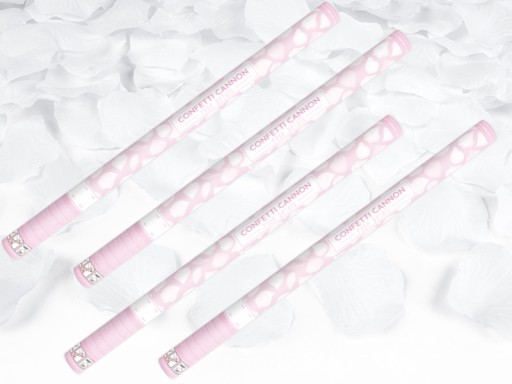 Z tubą każda impreza będzie wystrzałowa. Zaskocz państwa młodych i przywitaj ich chmarą białych płatków róż. Nasze tuby strzelające z łatwością dopasujesz do przyjęcia o dowolnej tematyce. Strzelająca tuba z białymi płatkami to świetne akcesorium np. dla gości weselnych zebranych pod kościołem, wyczekujących pary Młodej. Wystarczy przekręcić dół tuby, za sprawą sprężonego powietrza wystrzelą w górę białe płatki róż.
