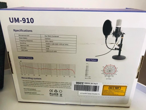 Gładka, płaska charakterystyka częstotliwościowa 30 Hz-16 kHz — rozszerzona charakterystyka częstotliwościowa jest doskonała do śpiewania, grania i kopiowania, mikrofon USB doskonale sprawdza się w odtwarzaniu dźwięku, wysokiej jakości mikrofon zapewnia doskonałe odtwarzanie dźwięku w Internecie.