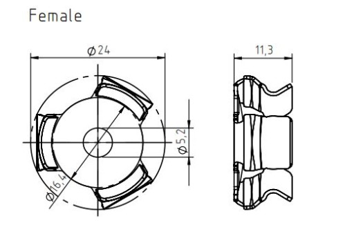 Składa się z dwóch części wykonanych ze stali nierdzewnej: damskiej i męskiej.