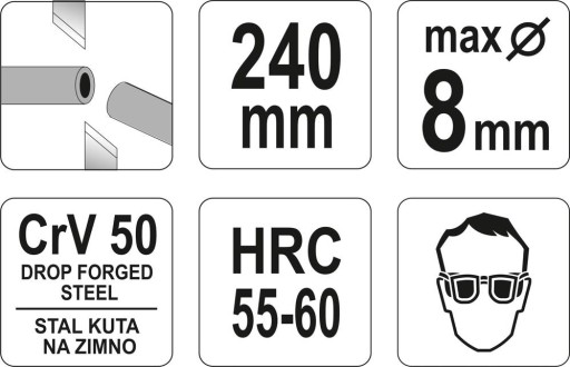 - Szczypce do cięcia przewodów o średnicach do 8 mm.
