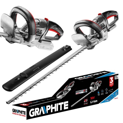Nożyce do żywopłotu akumulatorowe Energy+ GRAPHITE 58G032 przeznaczone do przycinania i podcinania żywopłotów, krzewów oraz cienkich gałęzi. Nożyce sprawdzą się doskonale w przydomowych ogródkach, działkach rekreacyjnych oraz innych miejscach otoczonych zielenią. Urządzenie posiada obrotową rękojeść, która umożliwi trzymanie w różnych pozycjach roboczych oraz osłonę chroniącą operatora przed zranieniem przycinanymi gałęziami.