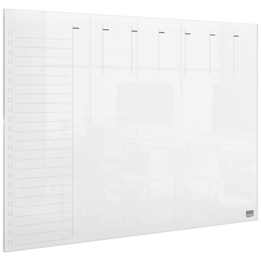 - Bezramkowa, przezroczysta konstrukcja sprawia, że tabliczka z tygodniowym planerem wtapia się w tło, gdy nie jest używana