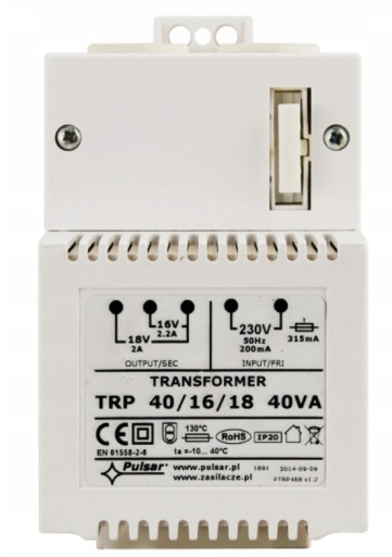 ⏩ Napięcie zasilania (±15%): 18 [V AC, 50-60 Hz]