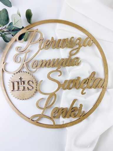 Круг ПРЕМИУМ настенный венок GOLD XXL COMMUNION + ИМЯ
