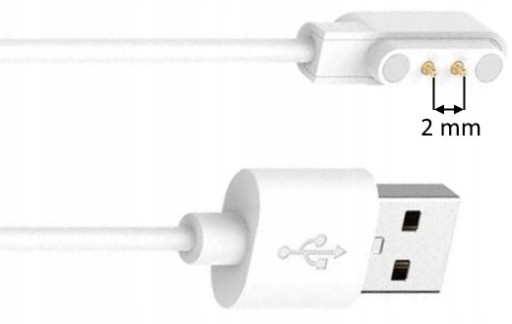 Kabel USB przewód magnetyczny 2 mm do ładowania zegarka smartwatcha KingWear KW10 KW20 DT88 PRO DT89 DT96 Microwear L5 L9 Rubicon RNAE36 RNBE37 RNBE45 G.Rossi BF1 BF2 AK12