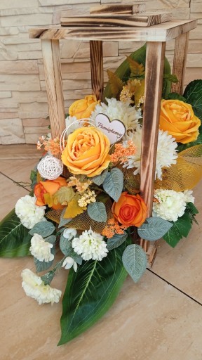 Zamawiasz ogólnie kolorystykę kompozycji, która może lekko się różnić od przedstawionych zdjęć (w razie jakiś braków kwiatków).