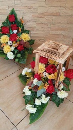 (cena dotyczy kompletu tylko kompozycji na grób, natomiast bukietu do wazonu dostępny na innej aukcji)