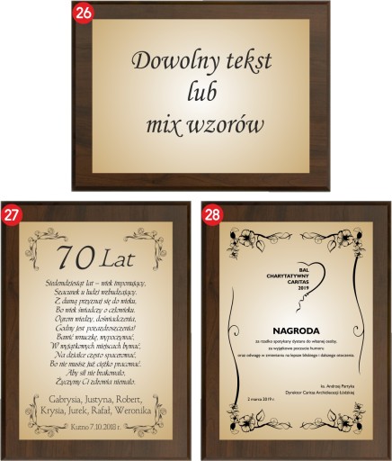 Teksty oraz warianty można dowolnie modyfikować według swojego uznania (teksty inne niż w naszych wariantach, należy przesłać w formie edytowalnej, np. notatniku), a liczby rocznic są wartościami przykładowymi, które można zmieniać.