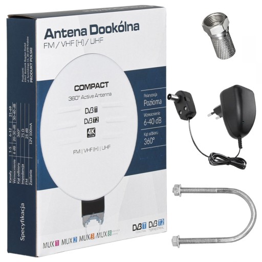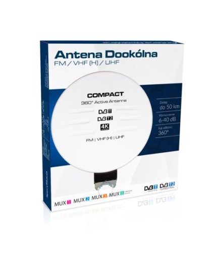 ANTENA DOOKÓLNA DO TV NAZIEMNEJ DVB-T2 ZEWNĘTRZNA AKTYWNA 4K HD MUX8 FM 360