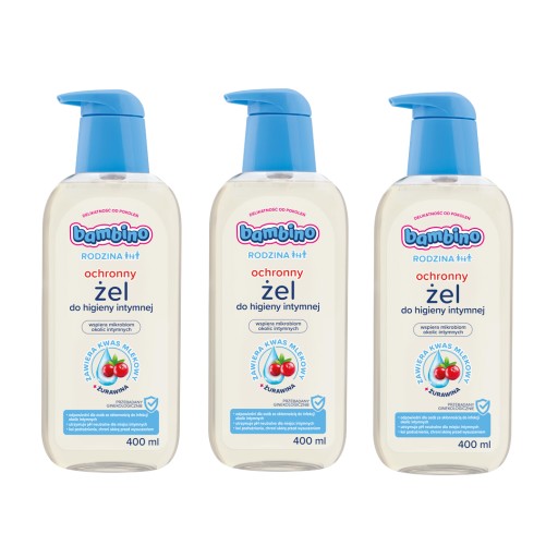 Zestaw Bambino RODZINA 3 x Ochronny żel do higieny intymnej ŻURAWINA 400 ml