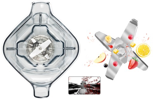 Wyposażony w trójwymiarowe ostrza o jakości spożywczej z czterema ostrzami (ostrze wewnętrzne + ostrze zewnętrzne), ten blender do smoothie może osiągnąć wszechstronne kruszenie lodu.