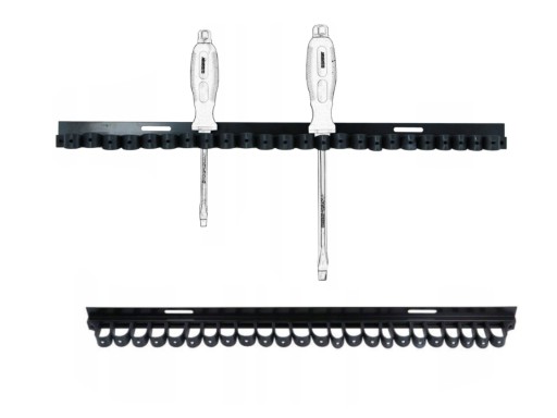 Wysokiej jakości wieszak ścienny. Idealnie nada się do uporządkowania śrubokrętów w warsztatach domowych jak i profesjonalnych warsztatach samochodowych.