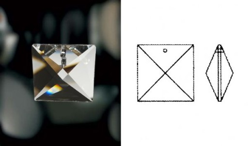 Kwadrat kryształowy o wymiarach 22x22 mm z 2 otworami mocującymi.