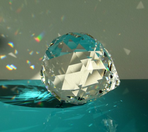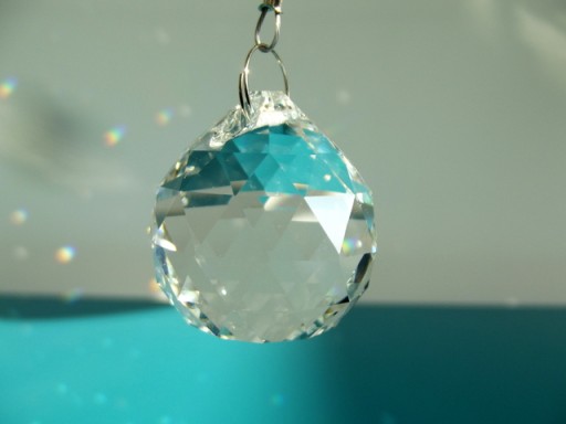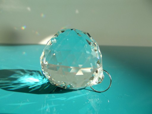 OPIS AUKCJI - Kryształ kula kryształowa o średnicy 4 cm. Może być zawieszką do żyrandoli bądź elementem wystroju okna, wnętrza. Kryształ wysokiej jakości, dający piękny błysk.