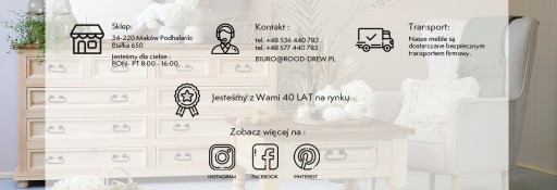 Ręcznie produkowane oraz specjalnie postarzane okucia meblowe nadają mu lat.