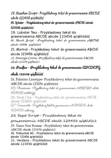 W mailu potwierdzającym zakup prosimy o podanie numeru wybranej czcionki!