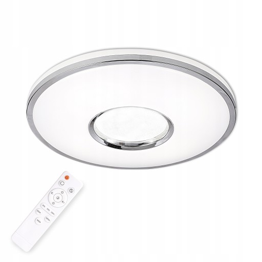 Plafon z pilotem za pomocą którego można płynnie zmienić barwę świecenia od ciepłej białej po zimno białą (2700K-6500K) oraz wybrać ilość światła, plafon z możliwością ściemniania.