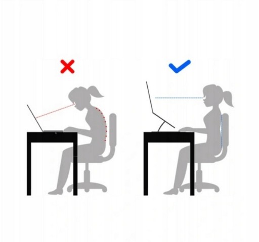 Ważnym czynnikiem ergonomii pracy przy komputerze jest ustawienie monitora, niestety laptopy nie posiadają takiej możliwości przez co w trakcie pracy jesteśmy narażeni na ciągłe garbienie się. Co może powodować bóle kręgosłupa w odcinku szyjnym. Dzięki zastosowaniu podstawki pod laptopa praca stanie się bardziej komfortowa.