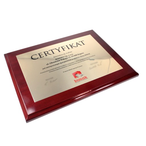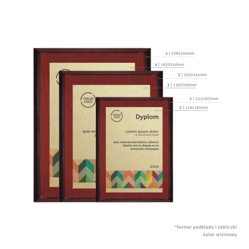 Dyplom / Certyfikat / Ryngraf na drewnianym podkładzie MDF 15x20 cm kolor wiśniowy Rosa