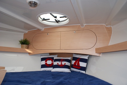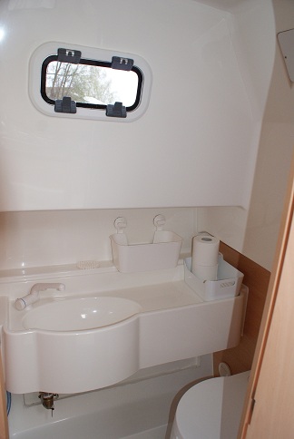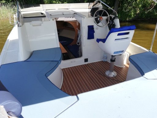 bimini (zadaszenie nad całym kokpitem), zbiornik na wodę czystą 70 litrów, przyłącze portowe 220V