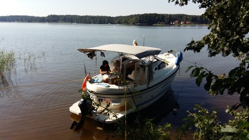 czarter jachtów motorowych Delphia Nano długość 8m szerokość 3 m, silnik zaburtowy 20KM, niskie zużycie paliwa 1litr / godzinę pływania,
