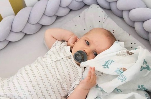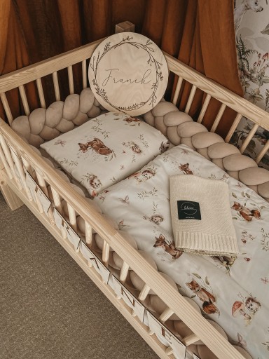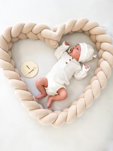 Do ochraniacza dołączone są tasiemki do przymocowania warkocza do łóżeczka.